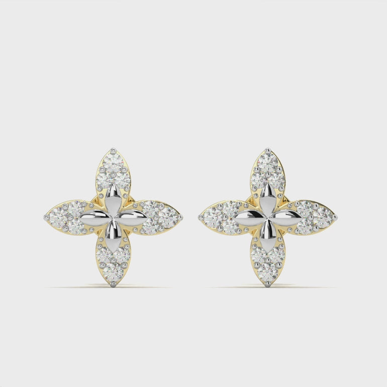 The Gaëlle earrings showcase a stunning floral-inspired design that exudes grace and sophistication. Each earring features a quartet of marquise-shaped petals adorned with dazzling round-cut diamonds, radiating brilliance from every angle. The refined metallic finish in contrasting tones adds a touch of modern elegance, highlighting the intricate craftsmanship. Perfect for adding a statement of timeless beauty, the Gaëlle earrings elevate any ensemble with their radiant charm and impeccable design.