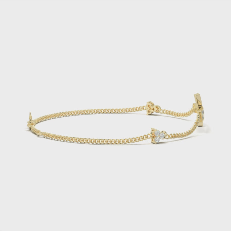This exquisite bracelet features a captivating cross design encrusted with meticulously set round brilliant diamonds, radiating unmatched brilliance. The sleek and refined chain complements the centerpiece, ensuring a comfortable fit while maintaining elegance. Crafted in a sophisticated metal finish, this bracelet is a timeless symbol of faith and style, making it a versatile and meaningful addition to your fine jewelry collection. Perfect for everyday wear or special occasions.