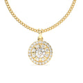 The Colette pendant is an exquisite embodiment of timeless elegance, featuring a dazzling central diamond surrounded by a halo of meticulously arranged smaller diamonds. The intricate design enhances the brilliance and fire of the stones, creating a captivating display of sparkle. Crafted with precision and attention to detail, this pendant is a sophisticated statement piece, perfect for elevating any ensemble. (Chain sold separately.)