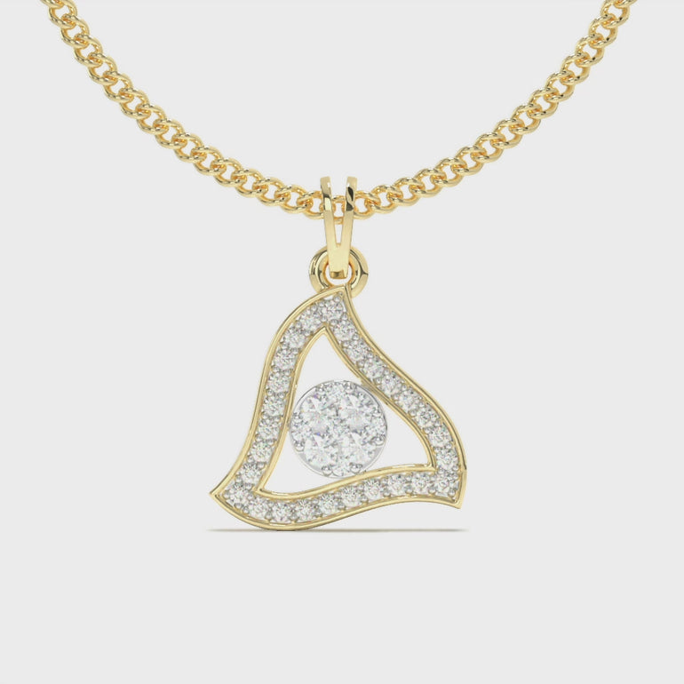 The Manon Pendant is a striking and contemporary piece of fine jewelry, designed to make a bold statement. Featuring a unique triangular frame adorned with an array of sparkling diamonds, it exudes brilliance and modern elegance. At its center lies a larger diamond cluster, adding depth and an eye-catching focal point. The pendant is expertly crafted with smooth, polished gold edges, enhancing its sophisticated allure. Perfect for formal events or elevating everyday wear. (Chain sold separately.)